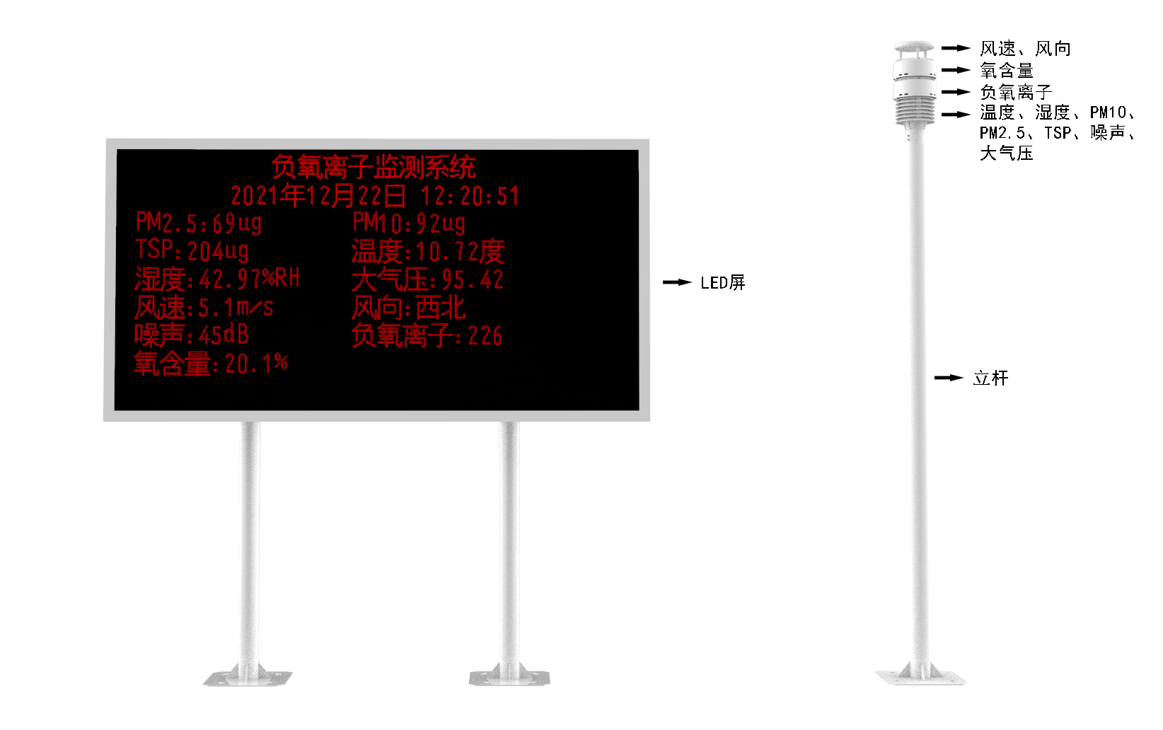 1、集成度高,方案靈活:系統(tǒng)可集成負氧離子、空氣溫度、空氣濕度、PM2.5、PM10、大氣壓力、氧含量、噪聲、風(fēng)速、風(fēng)向